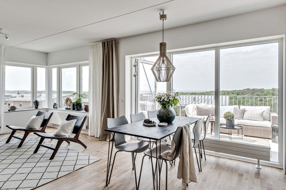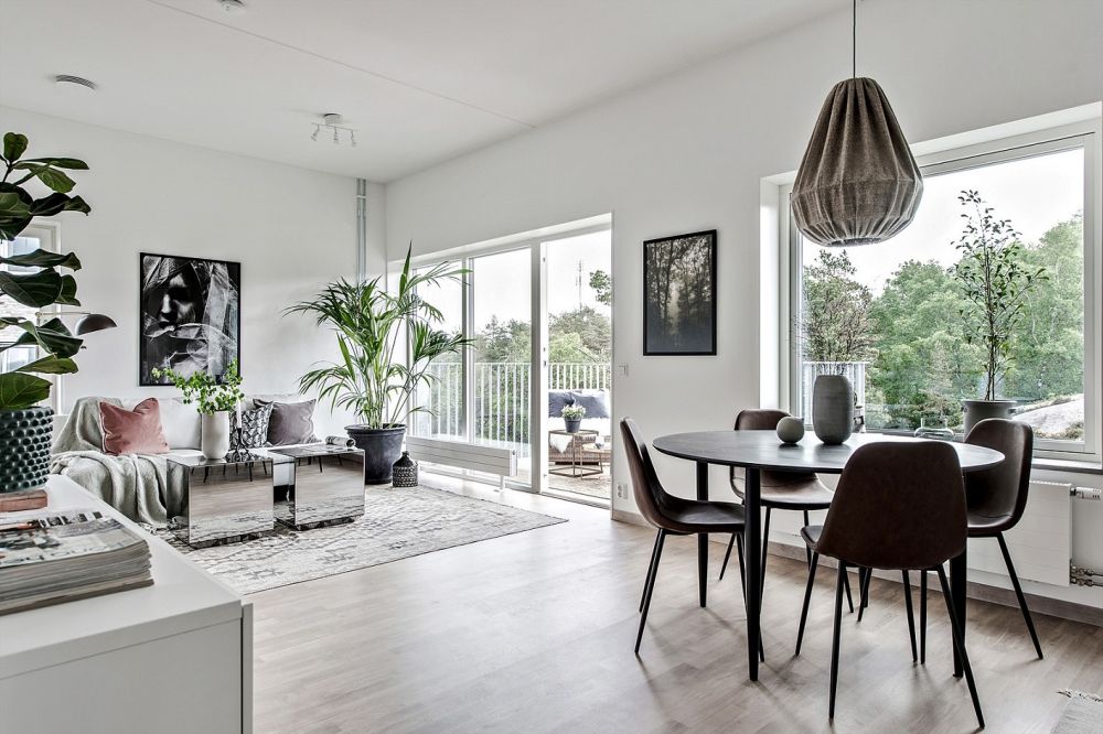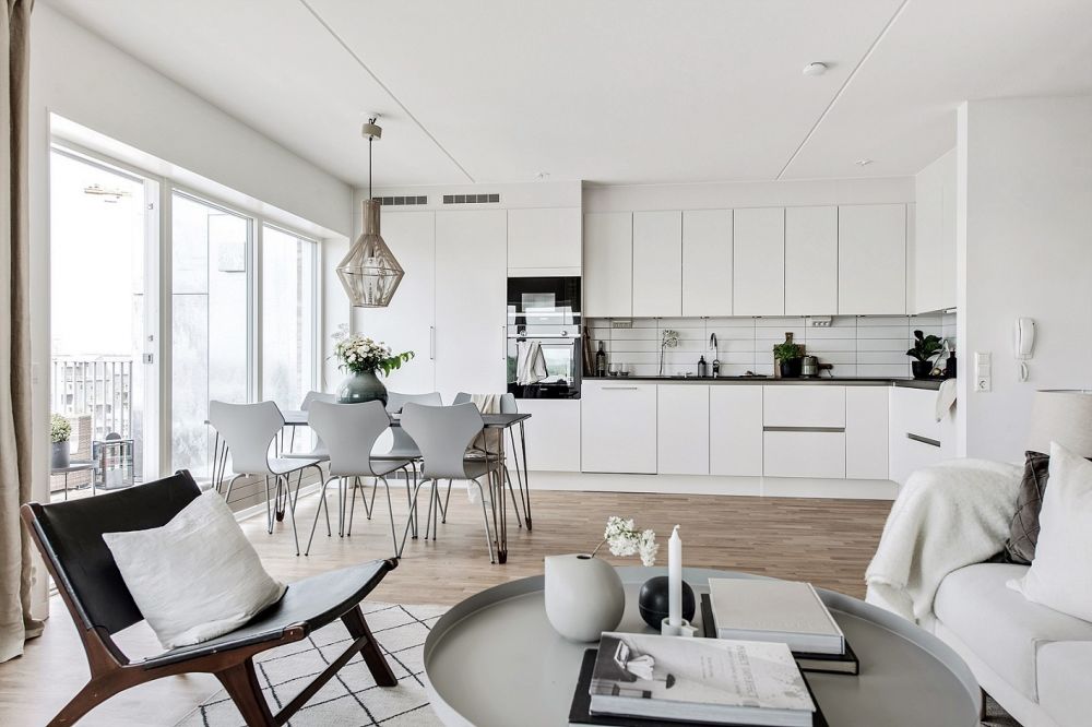 ALLMÄNT Varje lägenhet har genomgående granitkeramik i hallen med vitpigmenterad ekparkett i övriga rum. Vitmålade väggar samt stora fönster med generösa ljusinsläpp på mellan 60-80 cm i bröstningshöjd. Fönstren vid balkonerna går hela vägen ner till golvet. Allrummet har härligt öppna ytor att umgås på med öppna planlösningar mot kök.