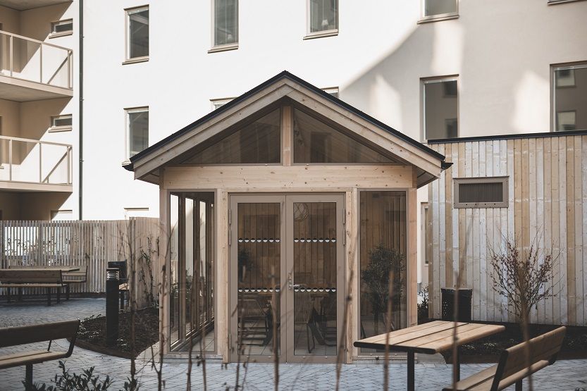 Samtliga bostäder i kvarteret har tillgång till den gemensamma slutna innergården med lusthus, boulebana, lekytor och planteringar. Det finns också en lokal med co-working och övernattningsrum i SoHå.