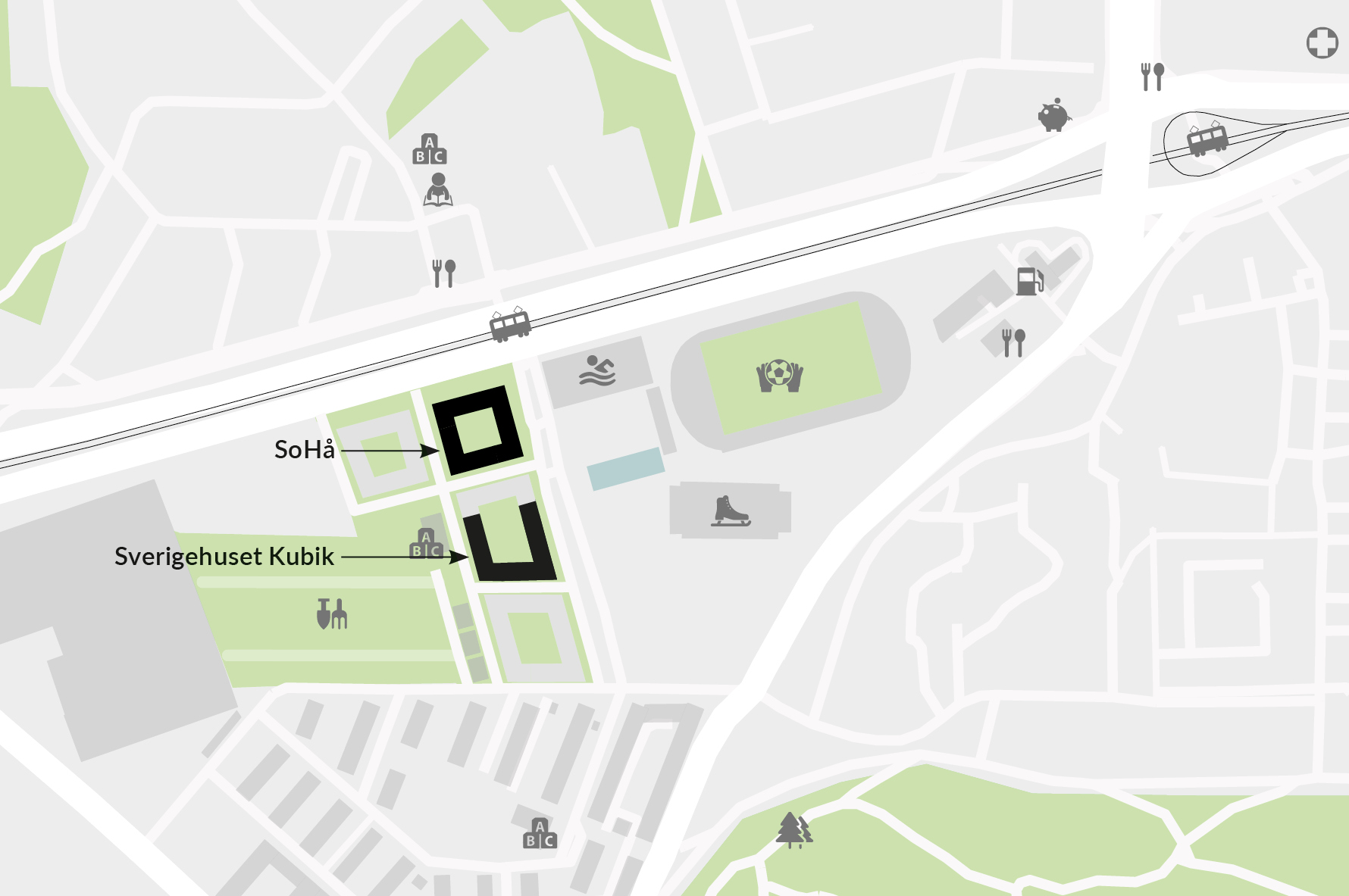 Samtliga bostäder i kvarteret har tillgång till den gemensamma slutna innergården med lusthus, boulebana, lekytor och planteringar. Det finns också en lokal med co-working och övernattningsrum i SoHå.