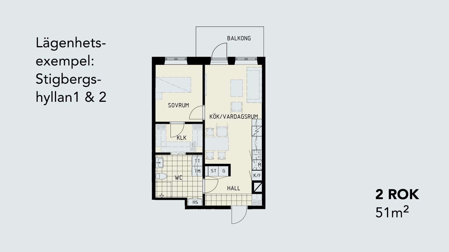 En kvadratsmart tvåa med välplanerad planlösning. Här är köket öppet och ljust, balkongen stor och badrummet likaså. I anslutning till det luftiga sovrummet finns en rymlig klädkammare med walk in closet. För dem som önskar kan man välja badrum en suite. Kort sagt, detta är en tvåa med genomtänkta ytor. Ett hem det är lätt att röra sig och härligt att umgås.