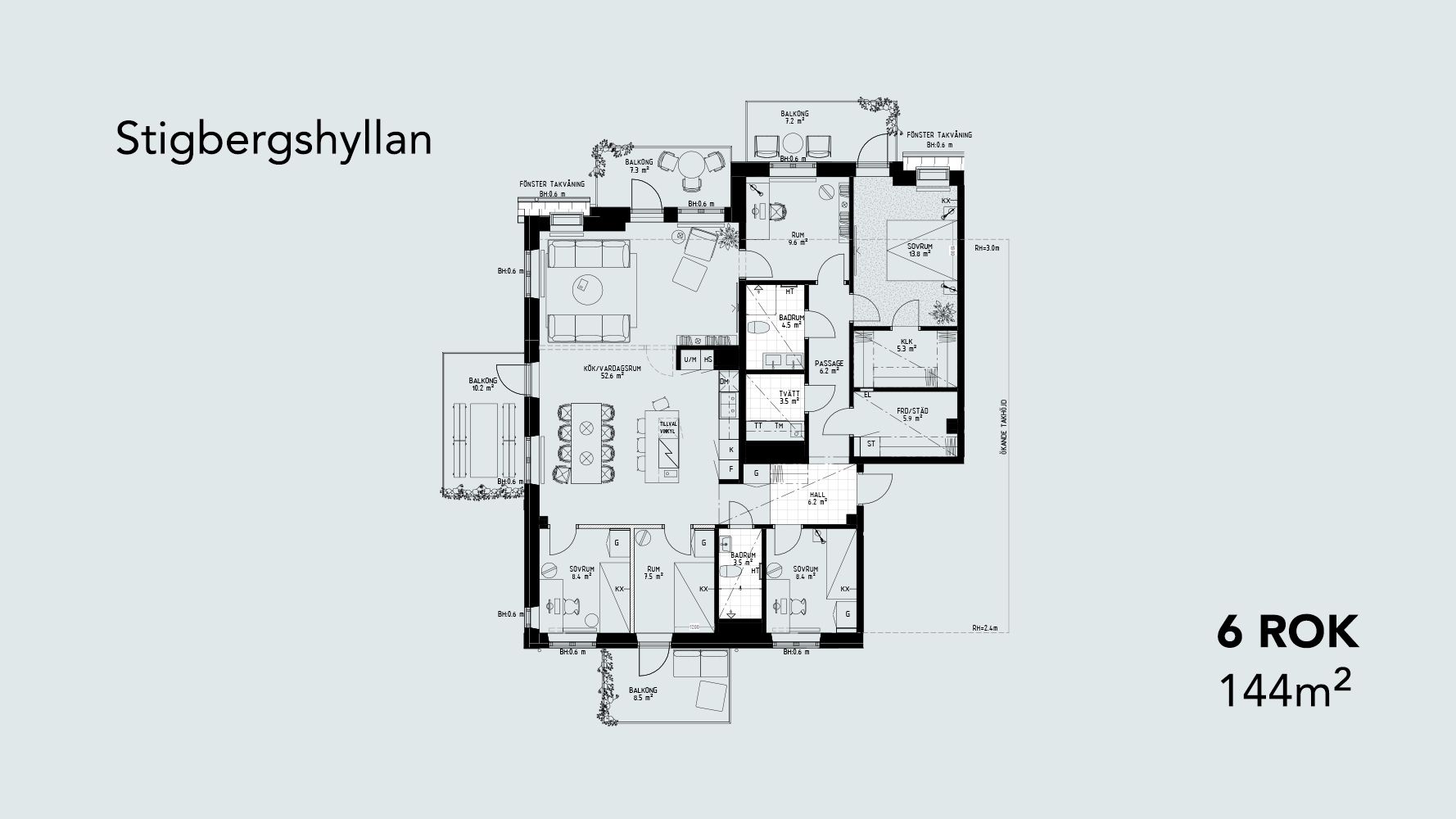 UNIK VÅNING PÅ 144 KVM MED FYRA BALKONGER.