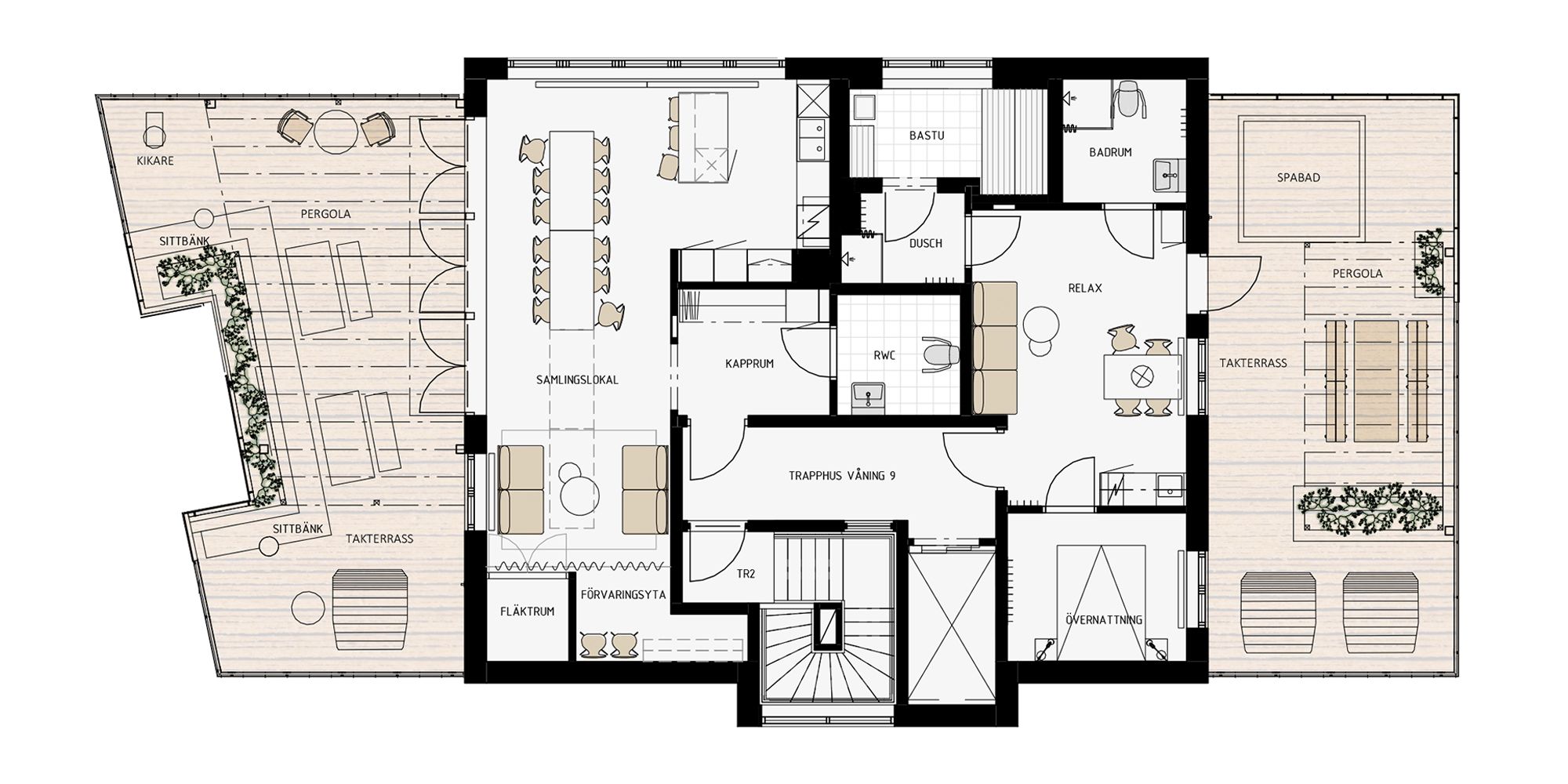 Högst upp i huset längs Kjellmansgatan har vi skapat en gemensam takvåning med extra allt!